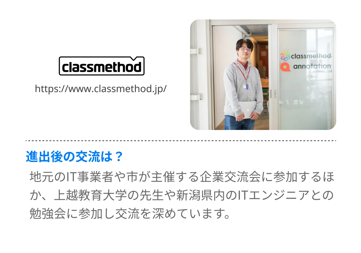 オフィス物件の紹介や進出時の報道対応を始め、人材採用に向けた専門学校、大学、ハローワーク上越等の担当者とのコーディネートなども対応させていただきます。
